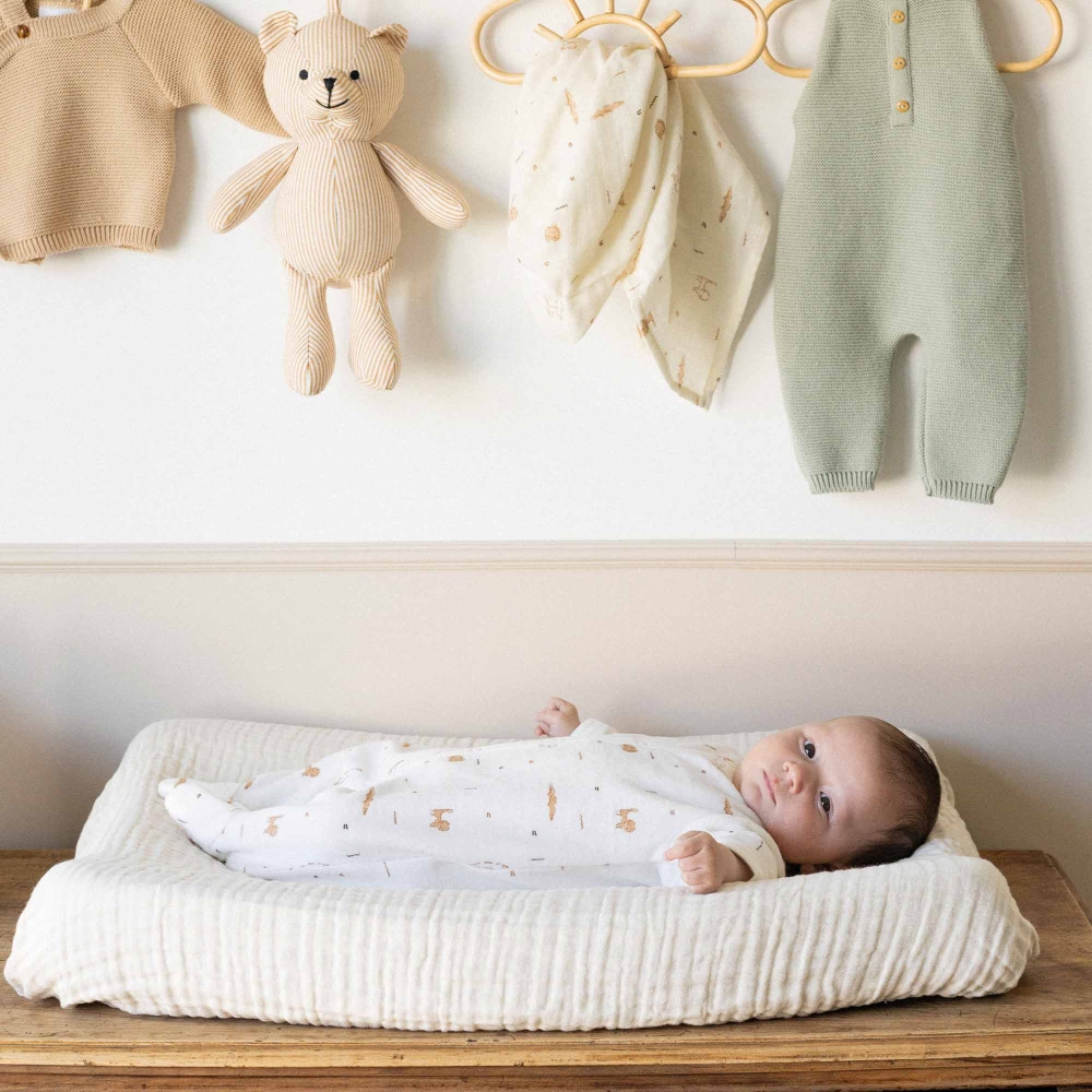 Sein modernes Safari-Design und die natürlichen Beigetöne passen sowohl in die Welt eines kleinen Mädchens als auch in die eines kleinen Jungen. Ideal für eine Erstausstattung oder als Geburtstagsgeschenk.