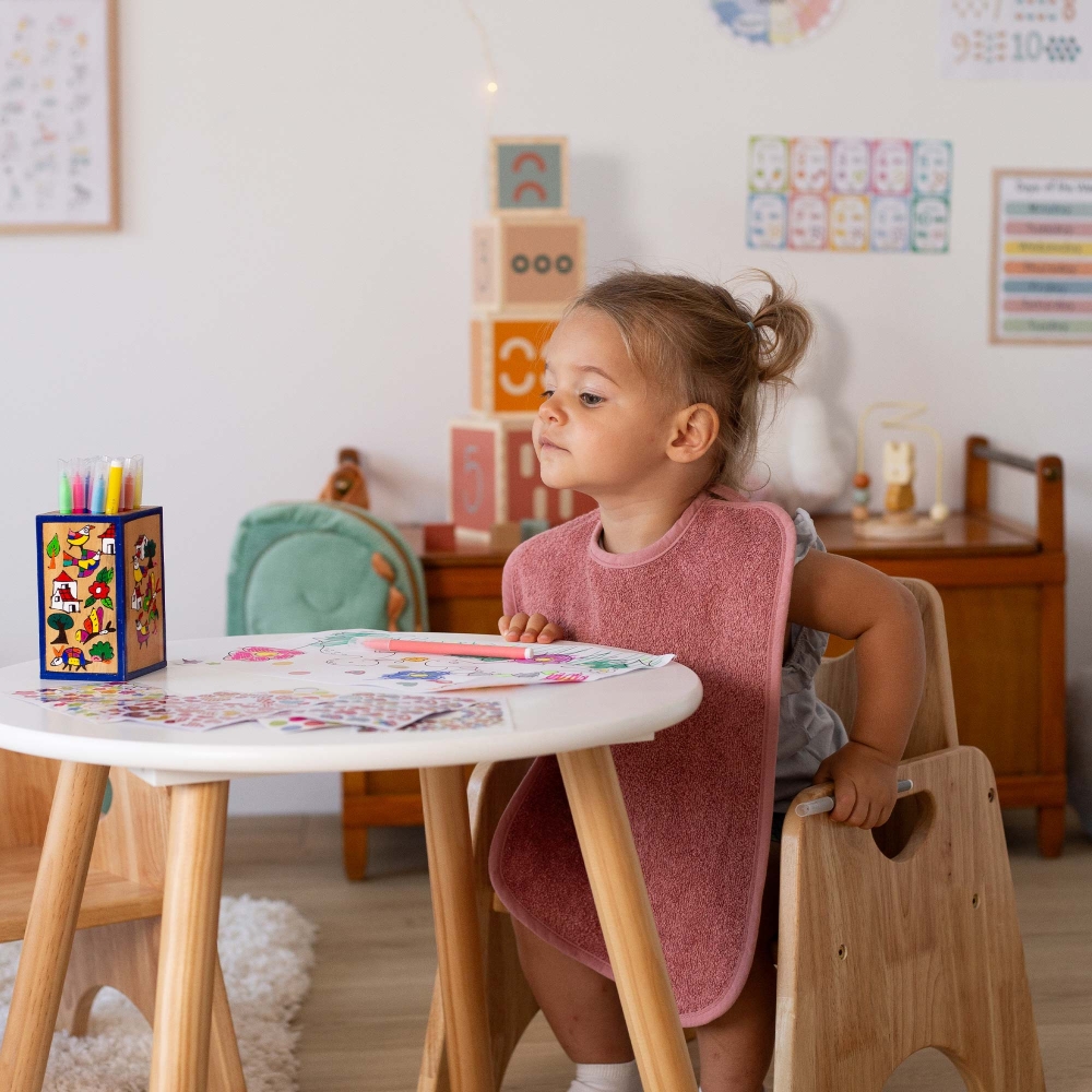 Das Lätzchen mit Bändern verbindet Schutz, Langlebigkeit und Komfort und ist dabei pflegeleicht. Es ist das perfekte Produkt für Krippen, die hochwertige Ausstattung für den Kinderalltag suchen.