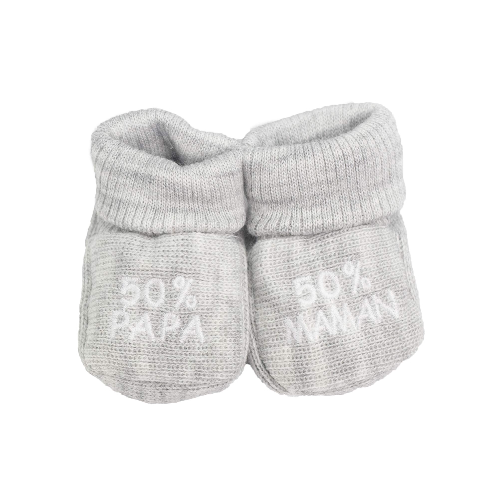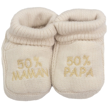 Babyschuhe mit Umschlag aus Strick "50% Papa 50% Mama"