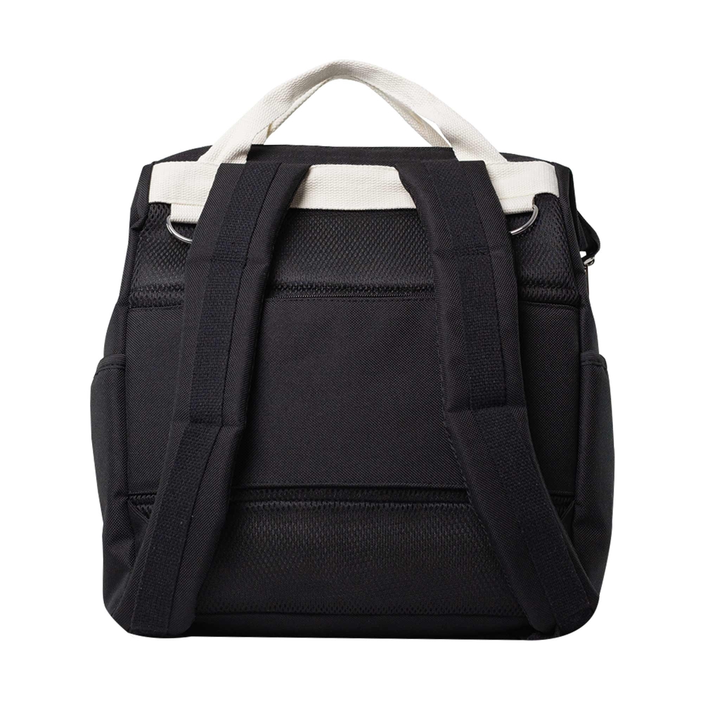 Leicht, kompakt (30 x 15 x 42 cm), mit verstärktem Rücken und verstellbaren Trägern, ist er bequem zu tragen. Sein schlichtes, dezentes und leicht zu kombinierendes schwarzes Design gefällt einer breiten Zielgruppe. Sein wasserabweisendes Material widersteht den kleinen Spritzern des Alltags, ein echtes Plus für Eltern.