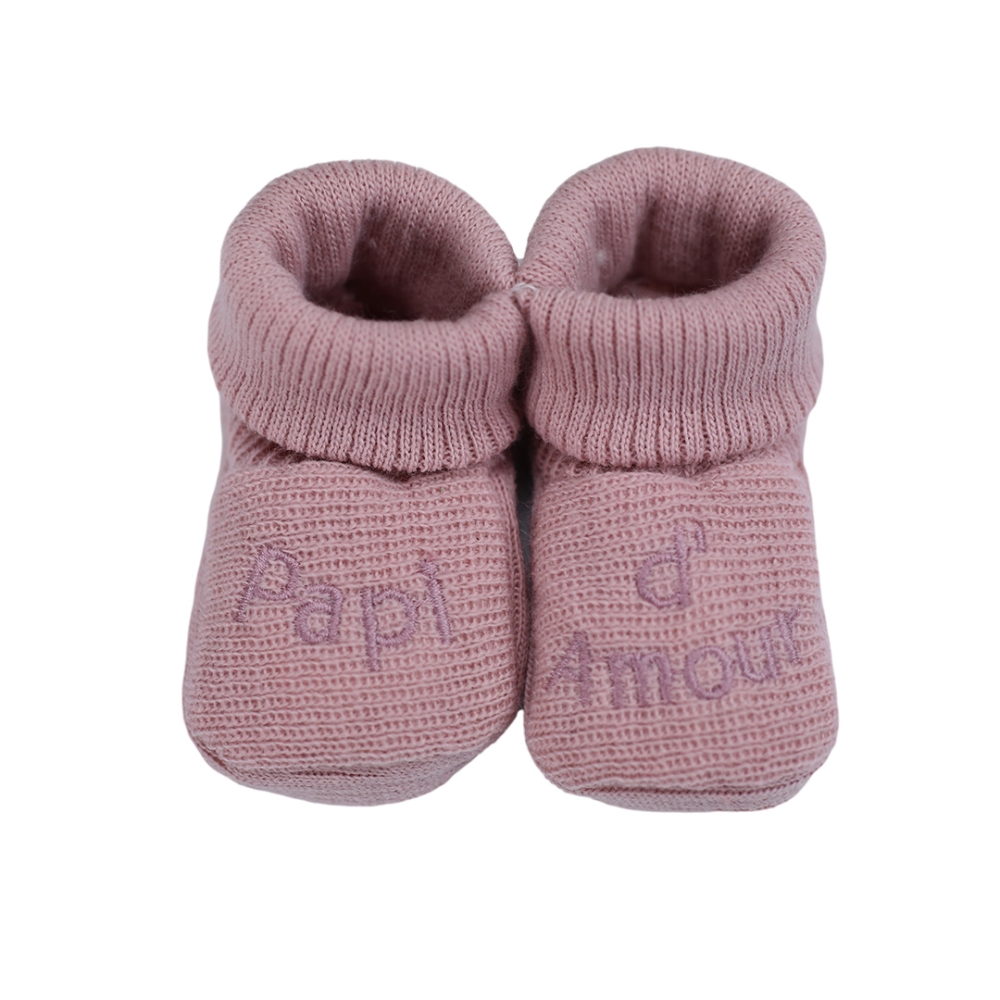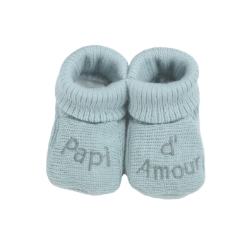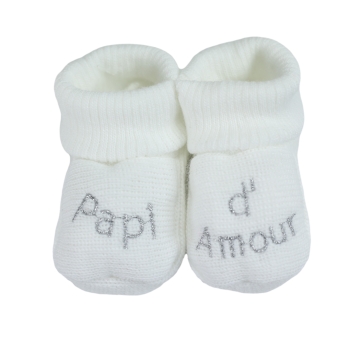 These birth slippers sold in a set of 24 pieces are composed of 6 pieces of each color. On each of the slippers, a quality embroidery "Grandpa's love" is affixed. A gentle way to announce the news. You can also find the baby slippers "Grandma's love" which will make the ideal pair for announcing to the future grandparents. This pair of slippers is suitable from birth up to approximately 1 month of age.