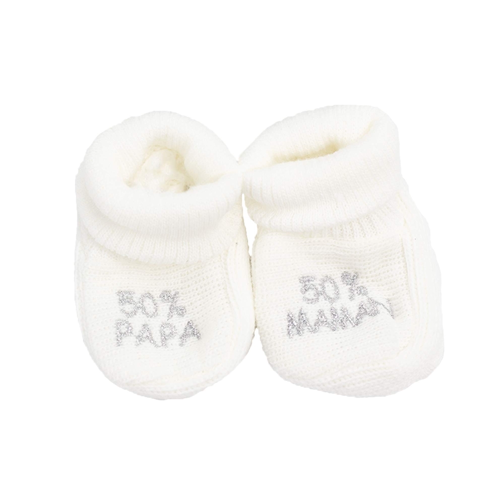 Baby booties with knitted cuff "50% daddy 50% mommy"
