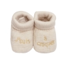 Baby booties with turn-down cuff, in loop knit fabric.