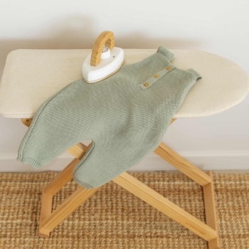 Available in four elegant colors, sage, caramel, old pink and sand, these overalls coordinate perfectly with the knitted cardigan, booties or matching beanies for a complete and refined look. Its timeless design makes it a unisex piece, perfect for a little boy or girl.