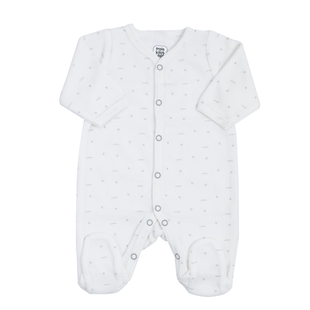 The 6-piece newborn kit in velvet is designed to bring comfort and practicality to new parents and their baby. This complete set includes everything you need for baby's first days: a pajama and a bodysuit, both with front openings for easy dressing and changing, a hat, a pair of mittens and booties to keep baby warm, as well as a matching pouch for easy storage or transport.