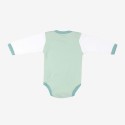 Descubre nuestro pack de 2 bodies elefante de manga larga. Con su abertura tipo camiseta americana, podrás pasar simplemente el body a través de la cabeza de tu bebé. Esto permite no tener que quitar completamente el body durante un cambio de pañal gracias a los 3 botones a presión presentes en la entrepierna. Las mangas largas también permiten cubrir bien los brazos de tu bebé para mantenerlo bien caliente. El primer body blanco está cubierto de pequeños elefantes grises y blancos. También tiene toques de verde. El segundo body es blanco con 3 motivos elefante en el frente. La parte trasera del body es verde claro con mangas blancas.