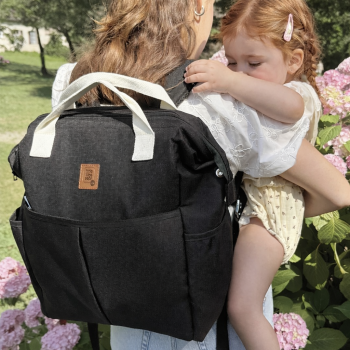 Con su elegante color negro, discreto y resistente a las manchas, se adapta tanto al atuendo de mamá como al de papá. Ligero, compacto y en material repelente al agua, esta mochila es una excelente opción para regalar o regalarse en un nacimiento.