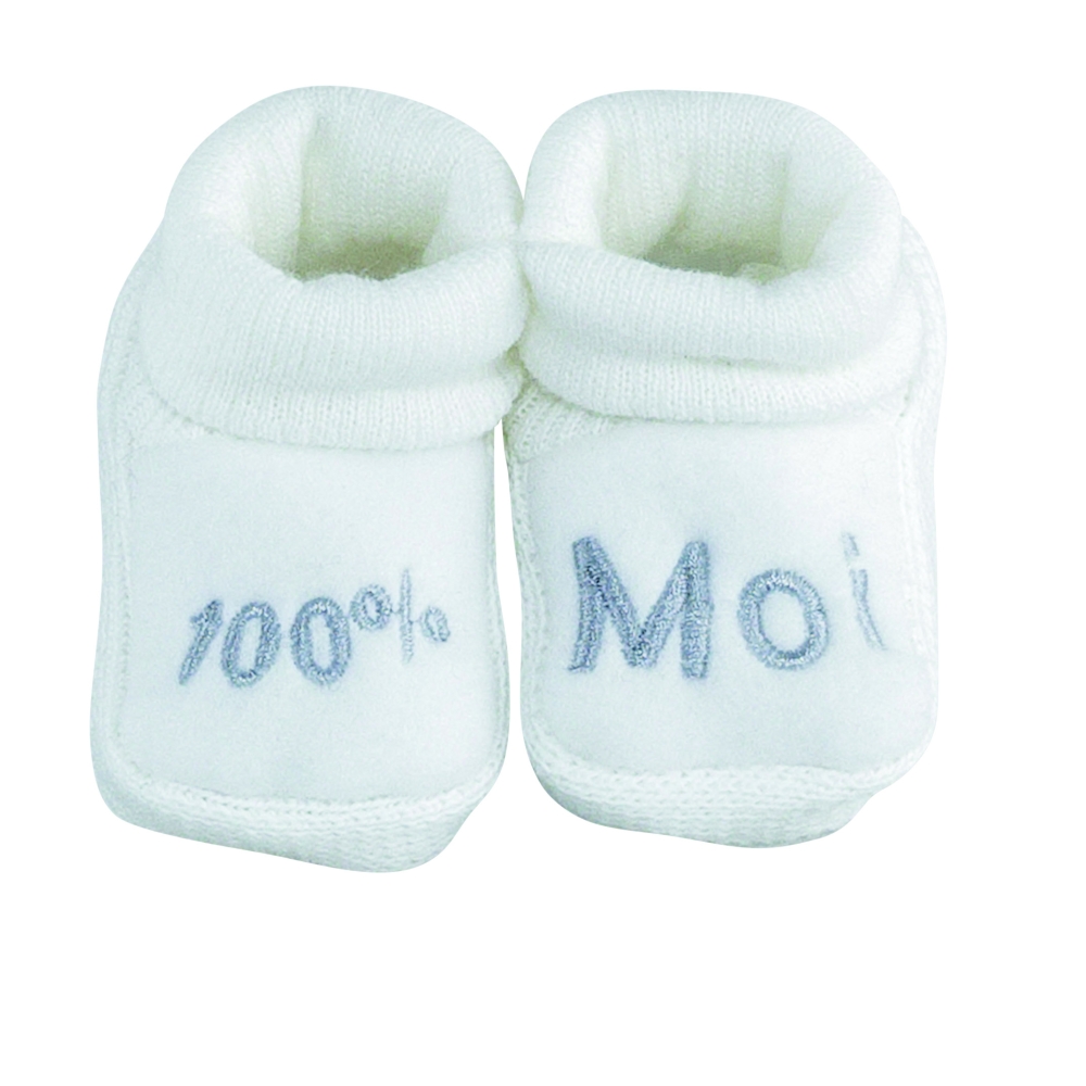 Su pequeño carácter muy suyo, su bebé podrá garantizar ser él mismo con estos patucos de nacimiento bordados “100% yo”.