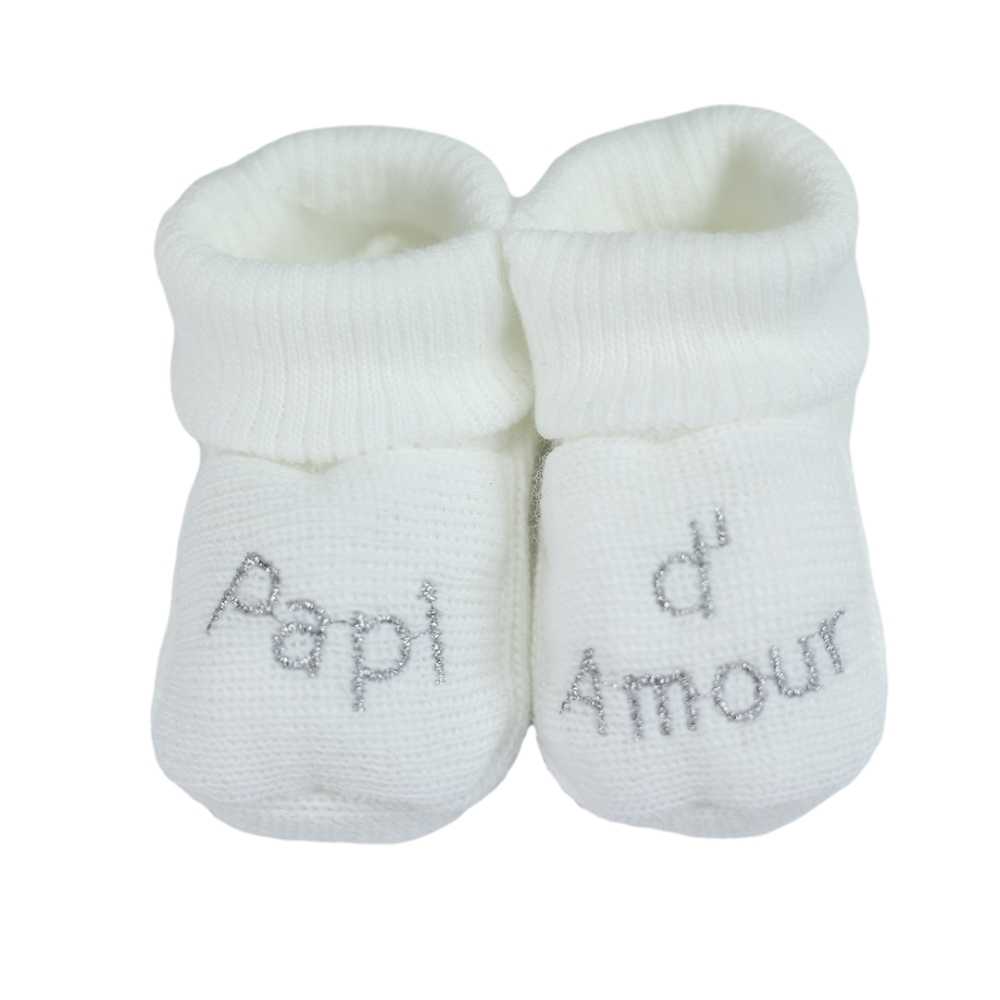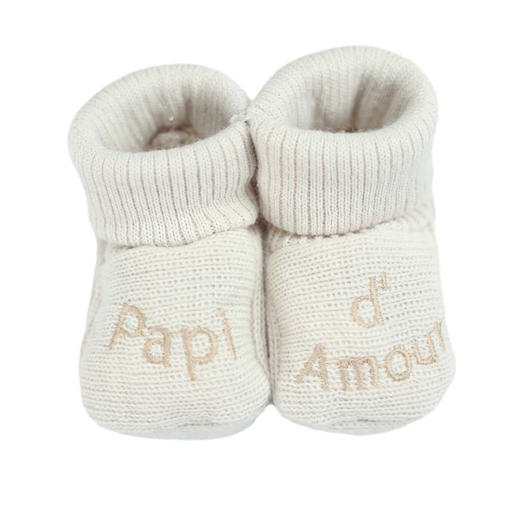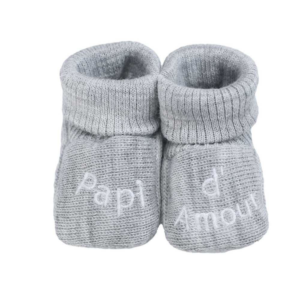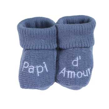 Estos patucos de nacimiento vendidos en lote de 24 piezas están compuestos de 6 piezas de cada color. En cada uno de los patucos, está colocado un bordado de calidad "Papi d'amour". De qué anunciar la noticia con dulzura. Encuentre también los patucos de bebé "Mamie d'amour" que harán la pareja ideal para el anuncio a los futuros abuelos. Este par de patucos conviene desde el nacimiento, hasta aproximadamente 1 mes del bebé.