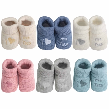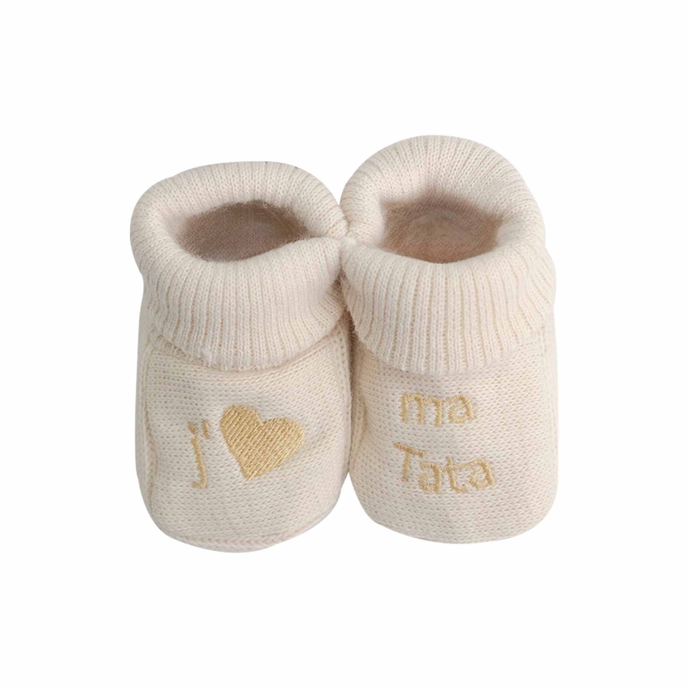 Añada un toque de emoción y ternura a su selección de nacimiento gracias a estos patucos bordados u00ABQuiero a mi titau00BB.