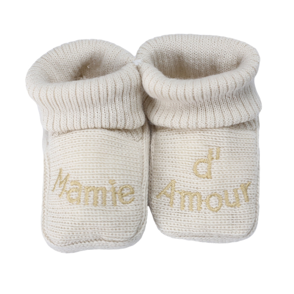 Chaussons naissance brodé - Mamie d'amour - 6 coloris