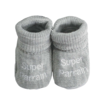 Chaussons bébé à revers en maille "Super marraine, Super Parrain"