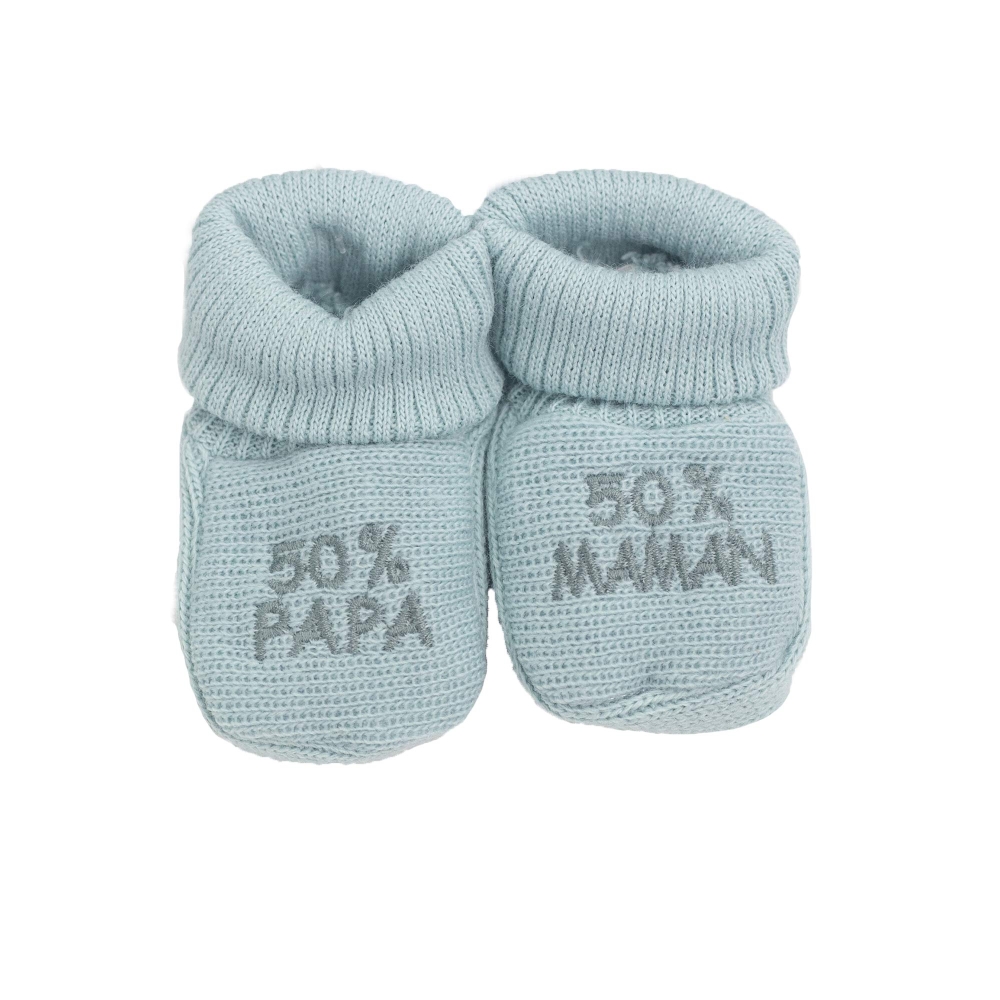 Scarpette per bambini con risvolto in maglia "50% papà 50% mamma"