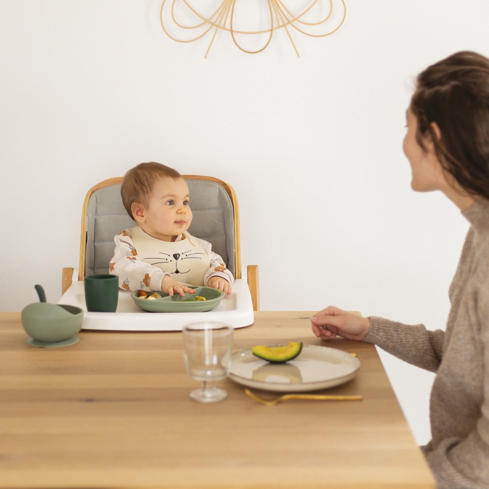 Disponibile nei colori rilassanti verde salvia e verde abete, questo set pappa si integra armoniosamente in qualsiasi cucina. Queste tonalità moderne aggiungono un tocco di sofisticatezza all'ora del pasto. Inoltre, ogni pezzo del set è ergonomico, facilitando la presa per genitori e bambini. Uno dei principali vantaggi di questo set pappa è la sua facilità di manutenzione. Tutti i pezzi possono essere messi in lavastoviglie, il che semplifica notevolmente la pulizia. I genitori apprezzeranno la comodità di poter lavare rapidamente ed efficacemente gli utensili del loro bambino, permettendo loro di concentrarsi su altri aspetti della genitorialità.