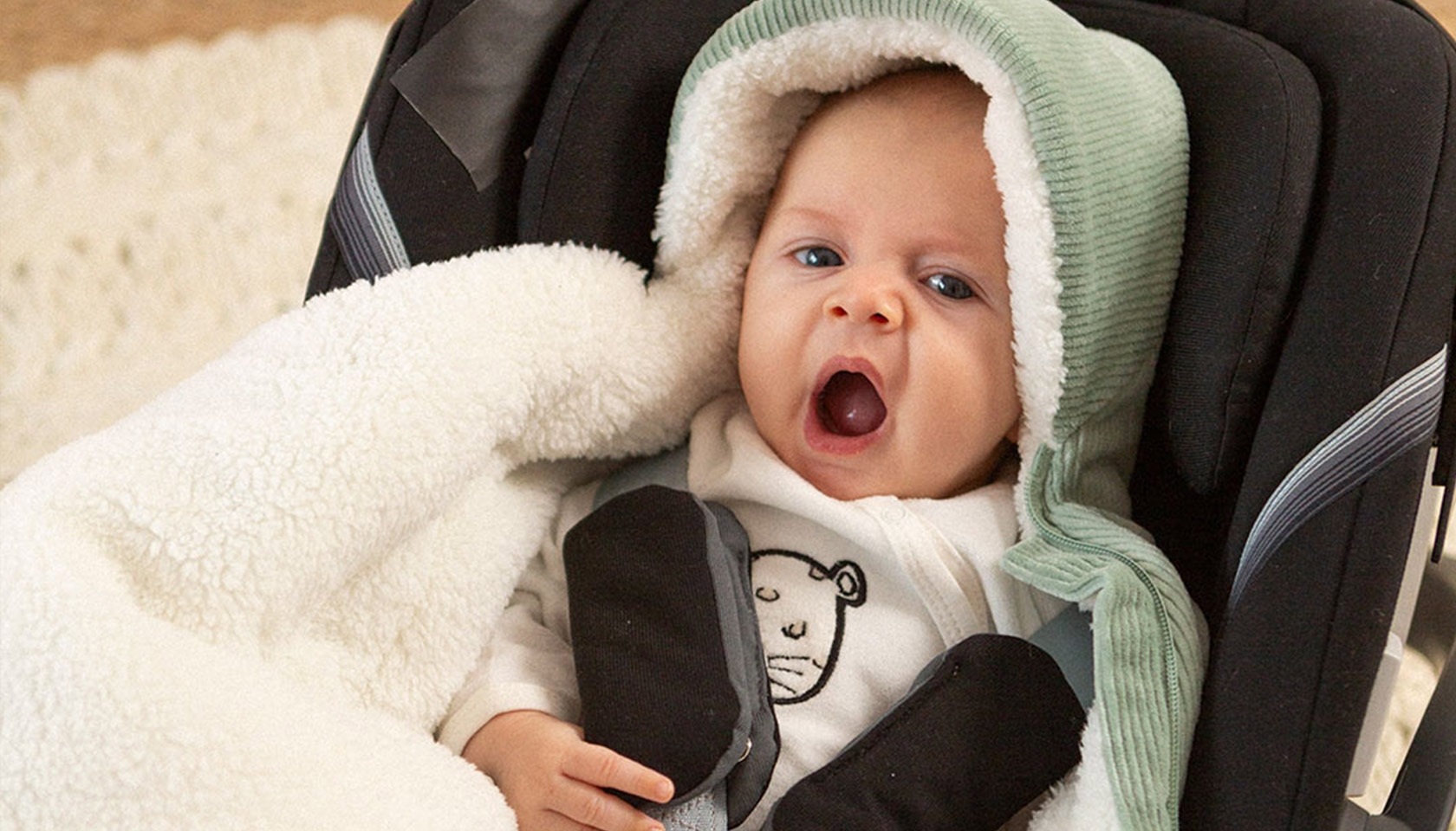 Ritssluiting, geïntegreerde capuchon, openingen voor het autostoeltje en zachte voering