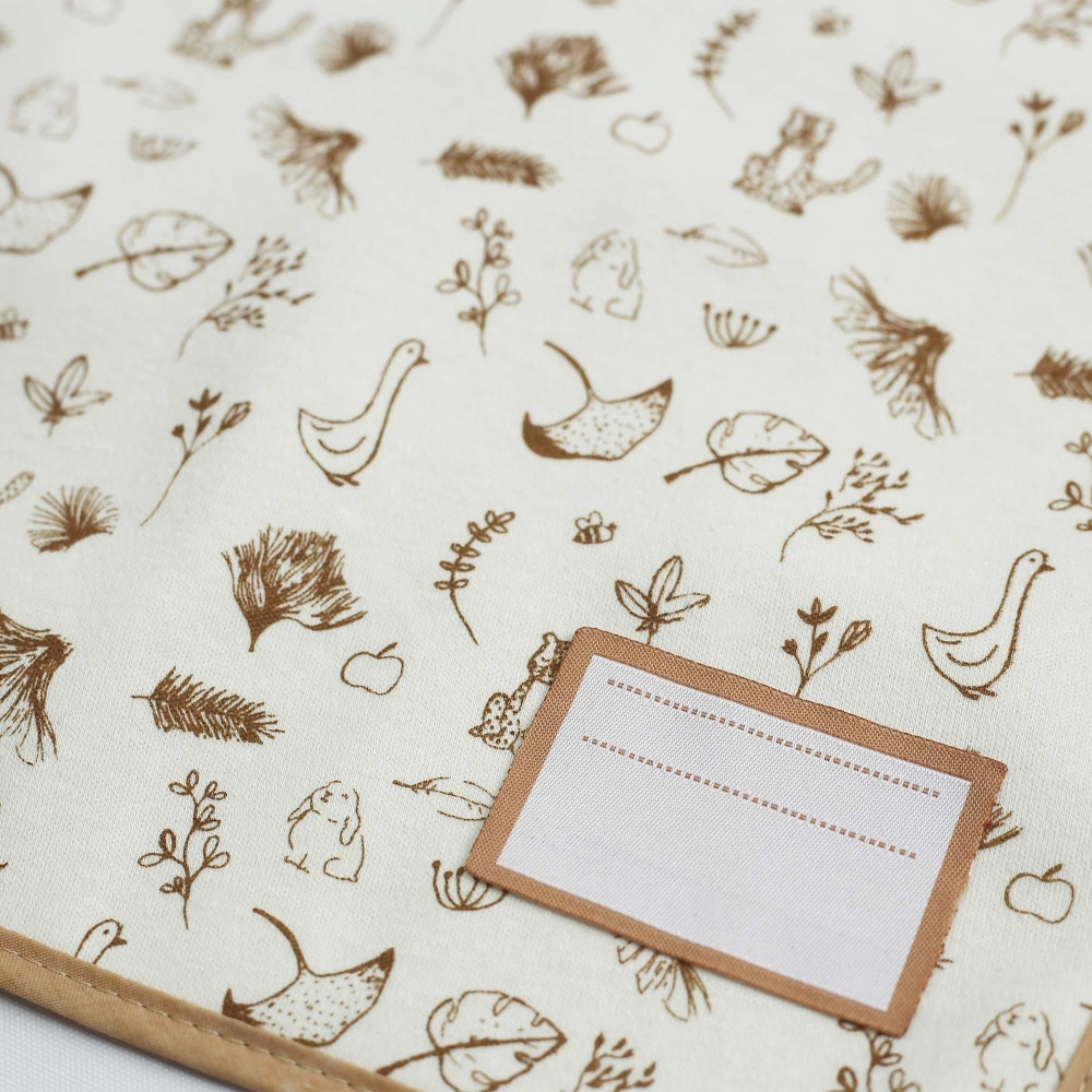 Deze twee grote babyslabbetjes zijn perfect voor het leren van diversificatie. Hun formaat van 30x38cm bedekt de hele romp van uw baby. Van badstof en gevoerd met een licht geplastificeerd membraan, zal er geen vloeistof doorheen komen. Gemakkelijk aan te doen bij baby, een elastisch koord zorgt voor ondersteuning en comfort. De effen beige kleur voor de ene en wit met mooie beige tekeningen zorgen voor de mixiteit van het product. Een klein geborduurd label aan de onderkant van de slabbetjes maakt het mogelijk om de voornaam van uw kind te noteren voor de oppas of het kinderdagverblijf.
